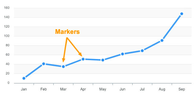 Markers are used to represent a particular data-point on the chart. Any size greater than 0 will enable the markers.
