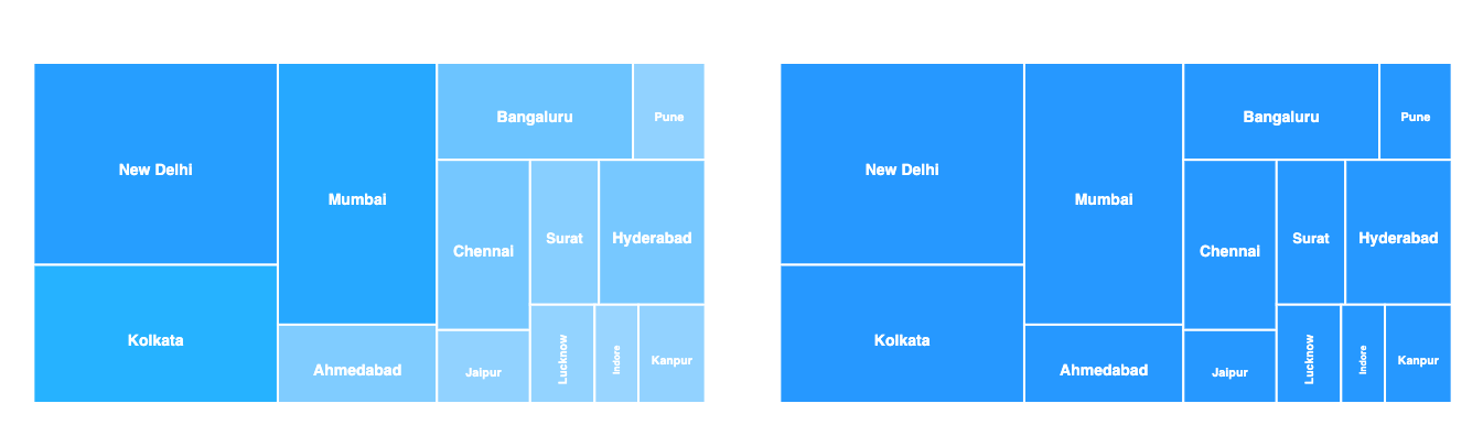 You can toggle the color-shades behavior of the treemap by this option. If you turn off this option, the color of the rectangles will not be affected by the cell value.