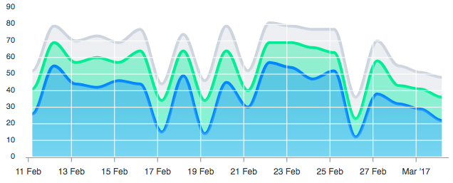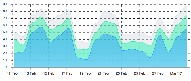 The gridlines can be drawn above the chart area by setting the grid.position to front