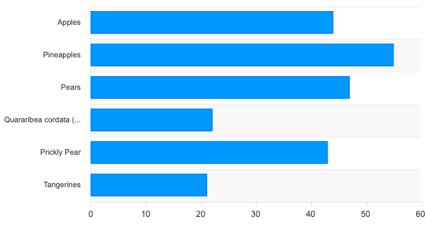 By default, long labels in a horizontal bar chart produce the following image. Notice that the horizontal bar charts labels are still provided in xaxis.categories.