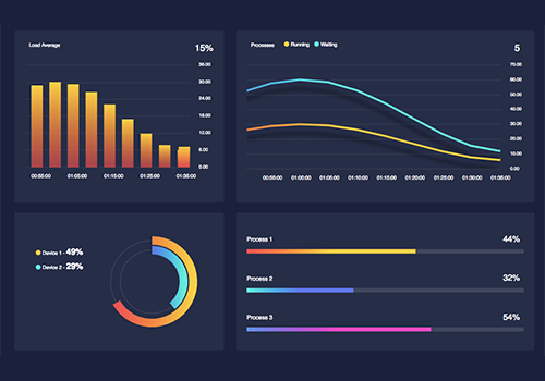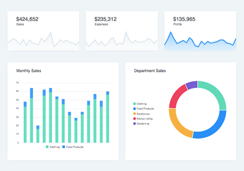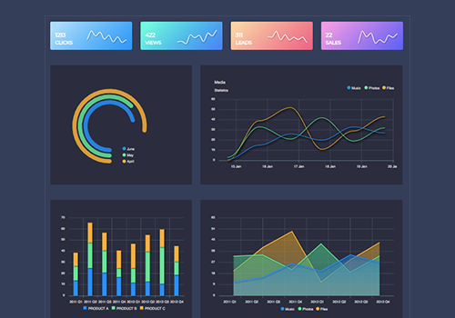 Browse Vue dashboards examples built with ApexCharts.js. Click on any example below to see the live chart and source code.